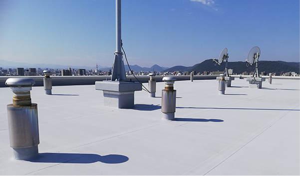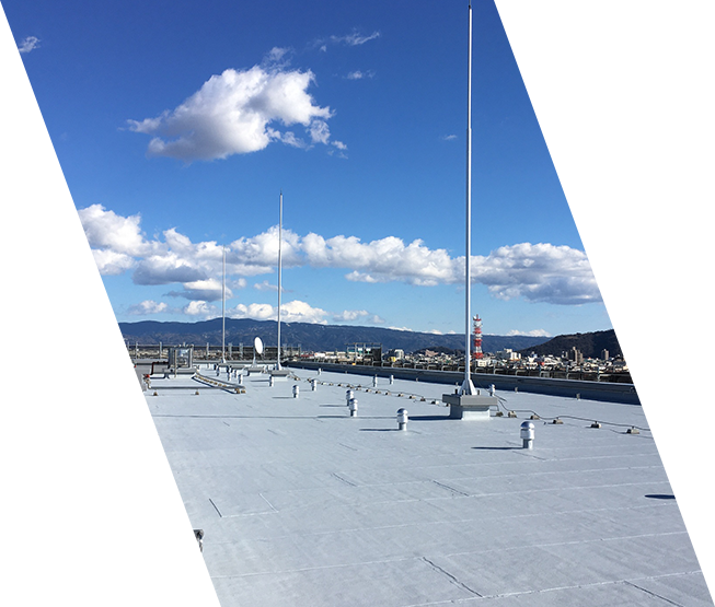 建物の屋上・ベランダ・バルコニーなど、雨の影響を受けやすい箇所に防水工事を施し、建材を守ります。