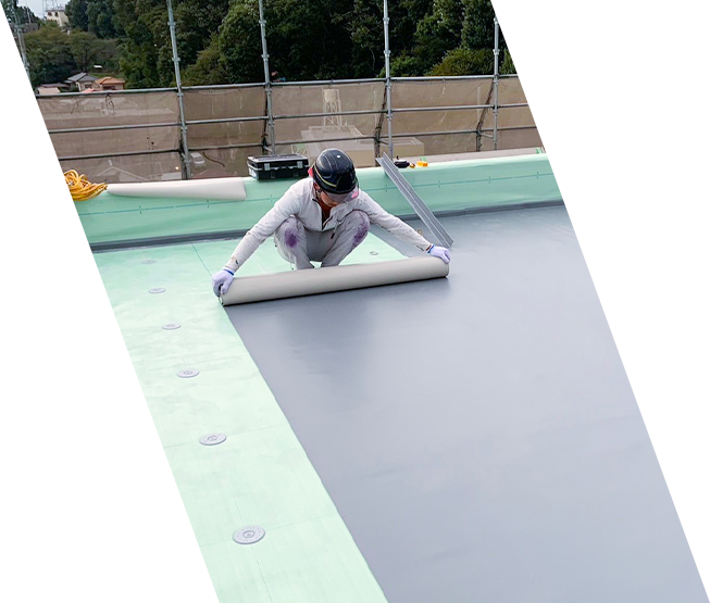 国家資格である「一級防水施工技能士(塩化ビニル系シート防水)」を保有したスタッフが在籍しており、高い技術力と多数の経験を活かした施工が当社の強みです。