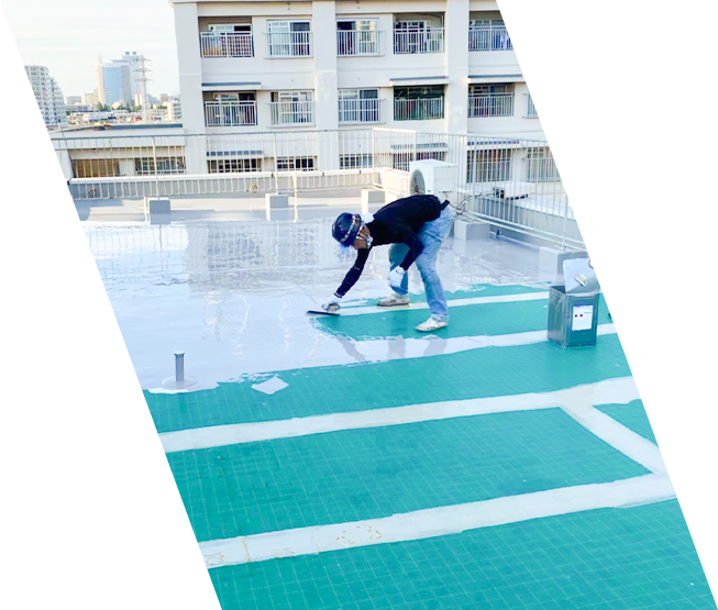 建物の屋上・共有廊下・バルコニーなど、雨の影響を受けやすい箇所に防水工事を施し、建材を守ります。