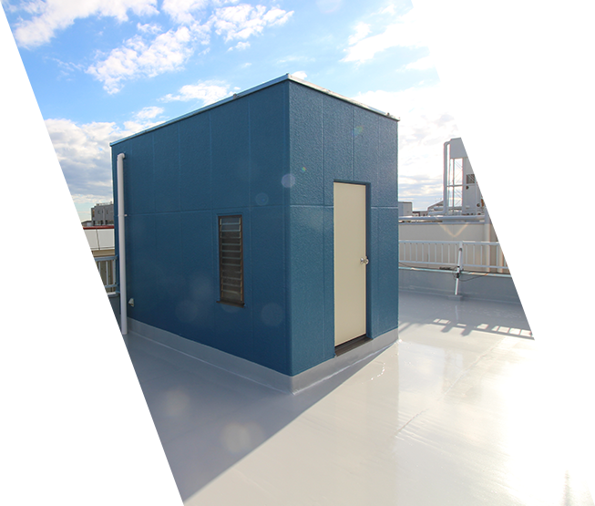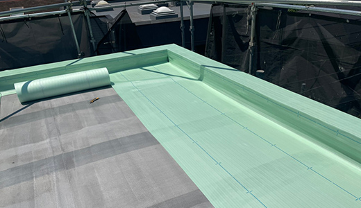ガラス繊維などで補強された、プラスチック素材のFRP防水。軽量でありながら、耐熱性・耐候性に優れており、シームレスな美しい防水層を形成できるのが特長です。