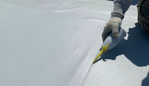 合成ゴムでつくられた防水シートを、下地材に貼り付ける工法です。伸縮性に優れているため、亀裂に対応できるのがメリット。小規模な工事・応急処置にオススメです。